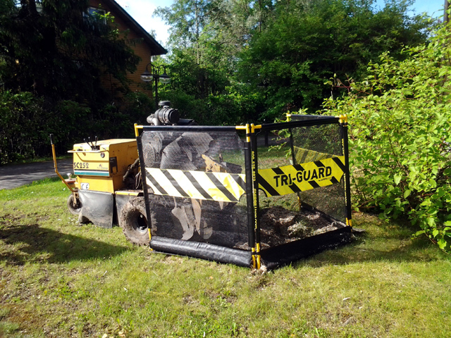 Lähellä liikenneväyliä tai muuten arkoja kohteita käytetään suojaverkkoa, joka pitää purun ja irtokivet oikeassa paikassa.