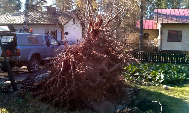 Myrskykaato Hyvinkääläisellä omakotipihalla.